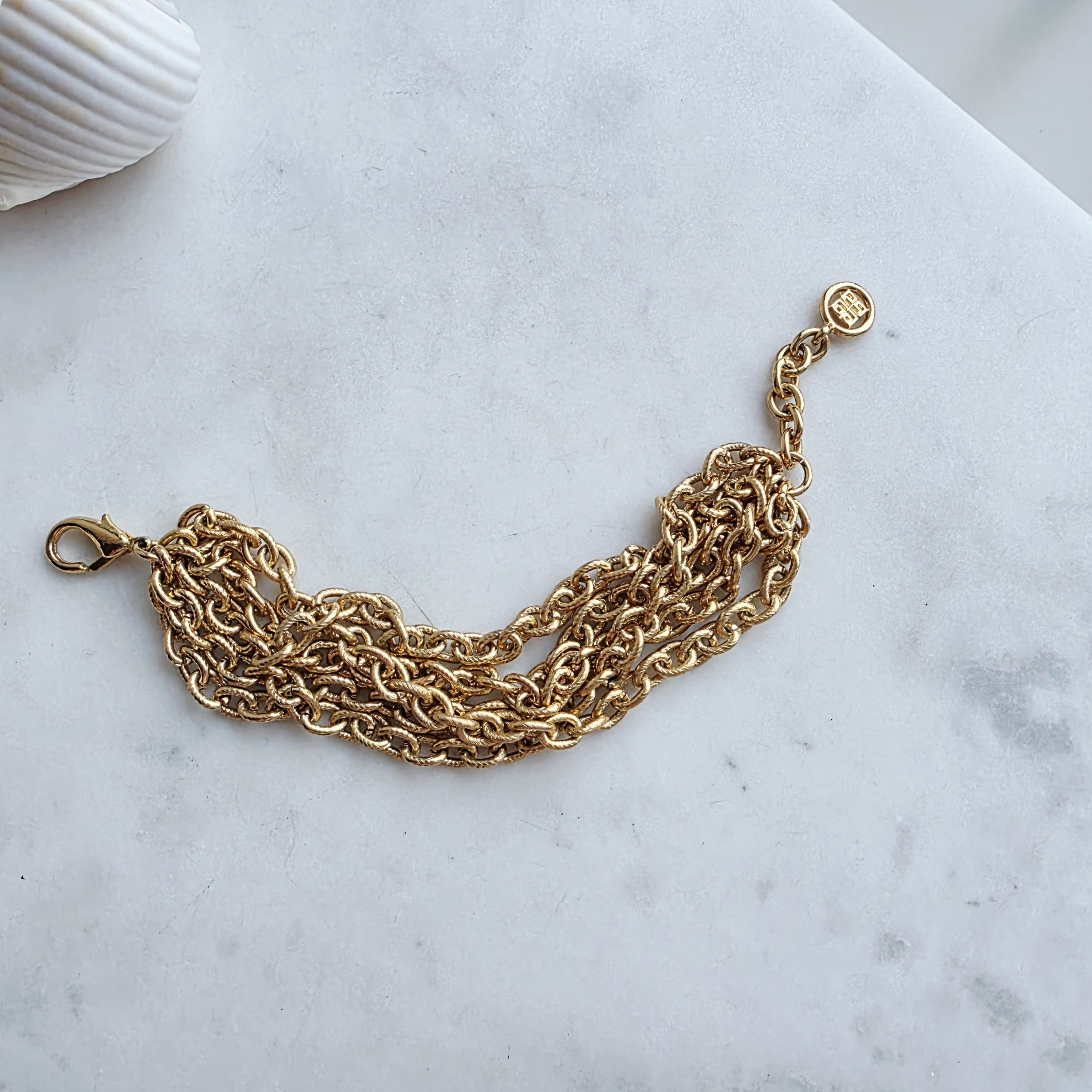 Шикарный браслет из цепочек от дома Givenchy. Выполнен в фирменном сплаве с идеальным покрытием: он отлично сочетается как и с глянцевыми аксессуарами, так и с матовыми. Браслетик идеально сядет на любое запястье, за счет вариативного хвотика. На конце браслета прикреплен логотип бренда.