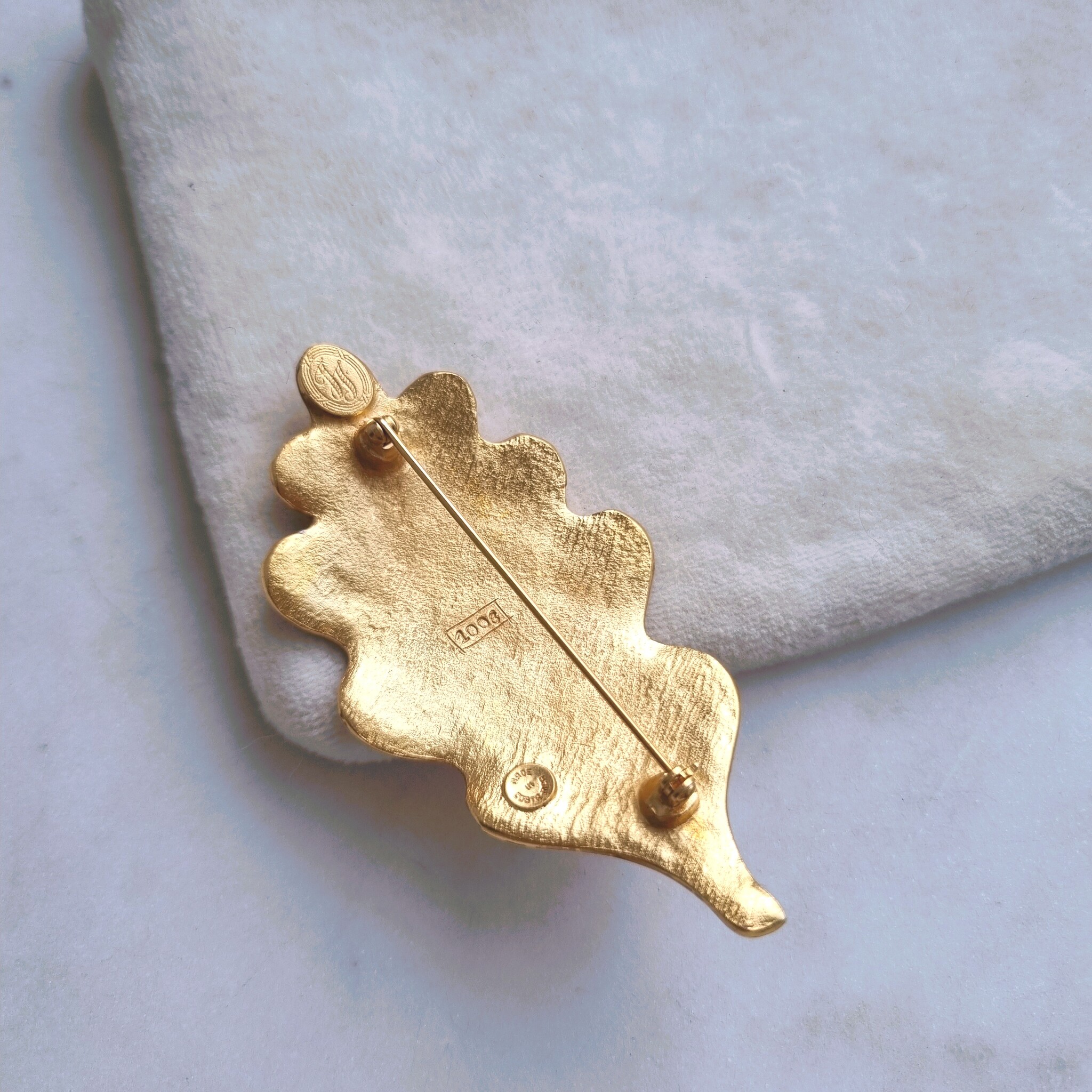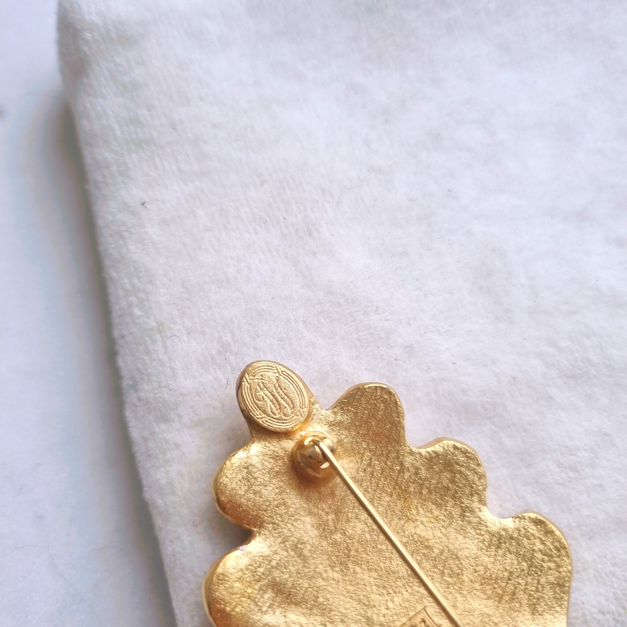 Стильная брошь в виде дубового листика от бренда. Брошь выполнена весьма реалистично и отлично будет выглядеть как на лацкане пиджака, так и пальто.