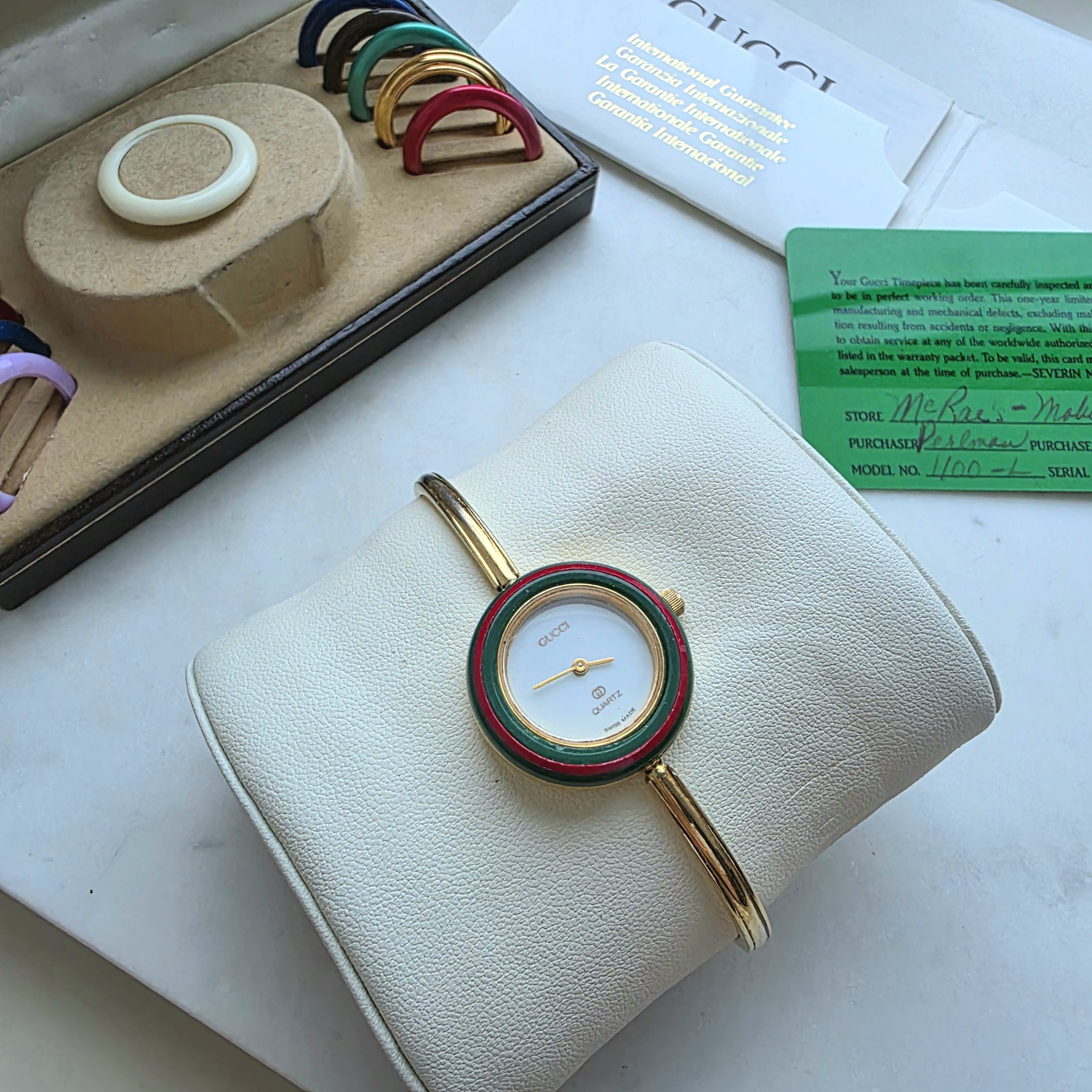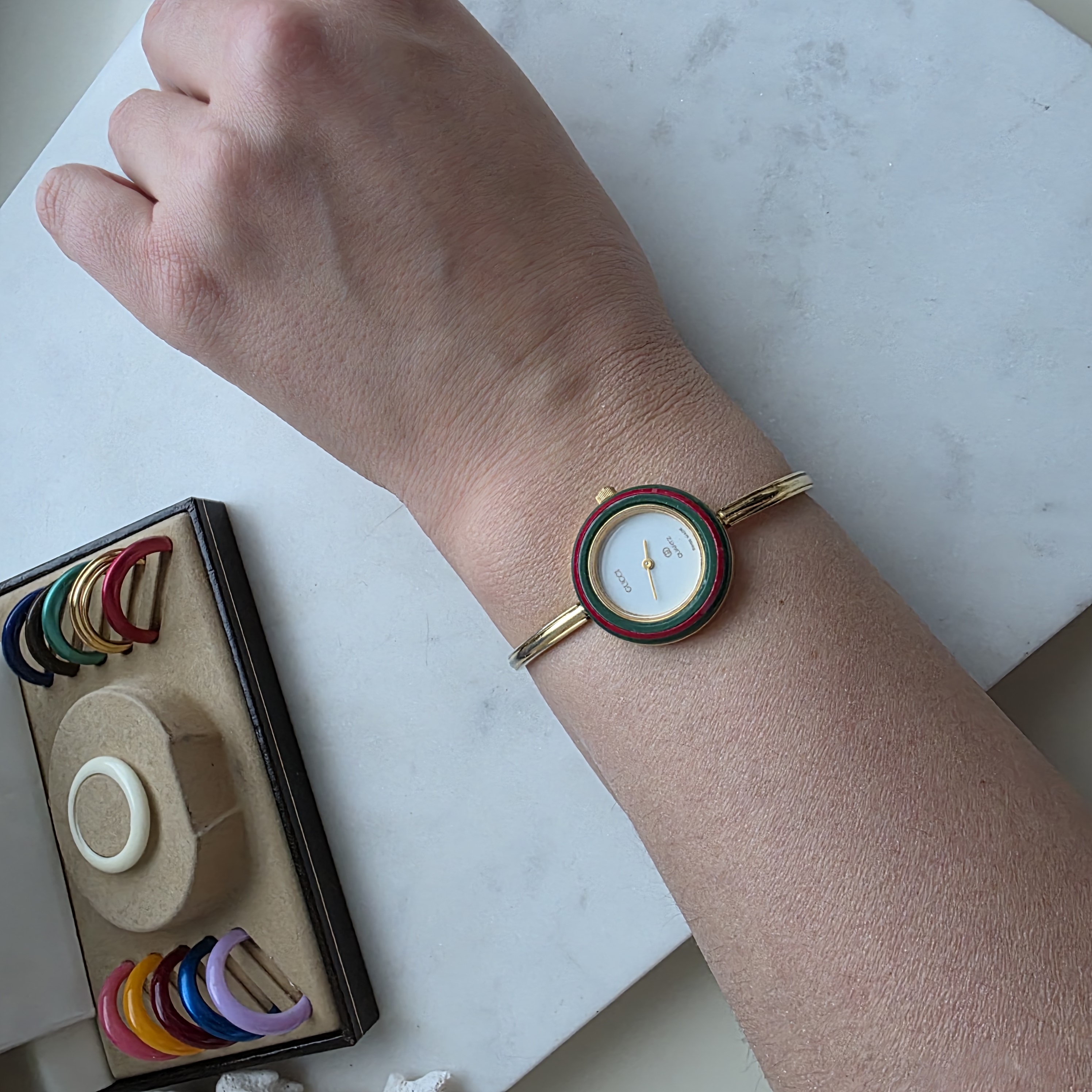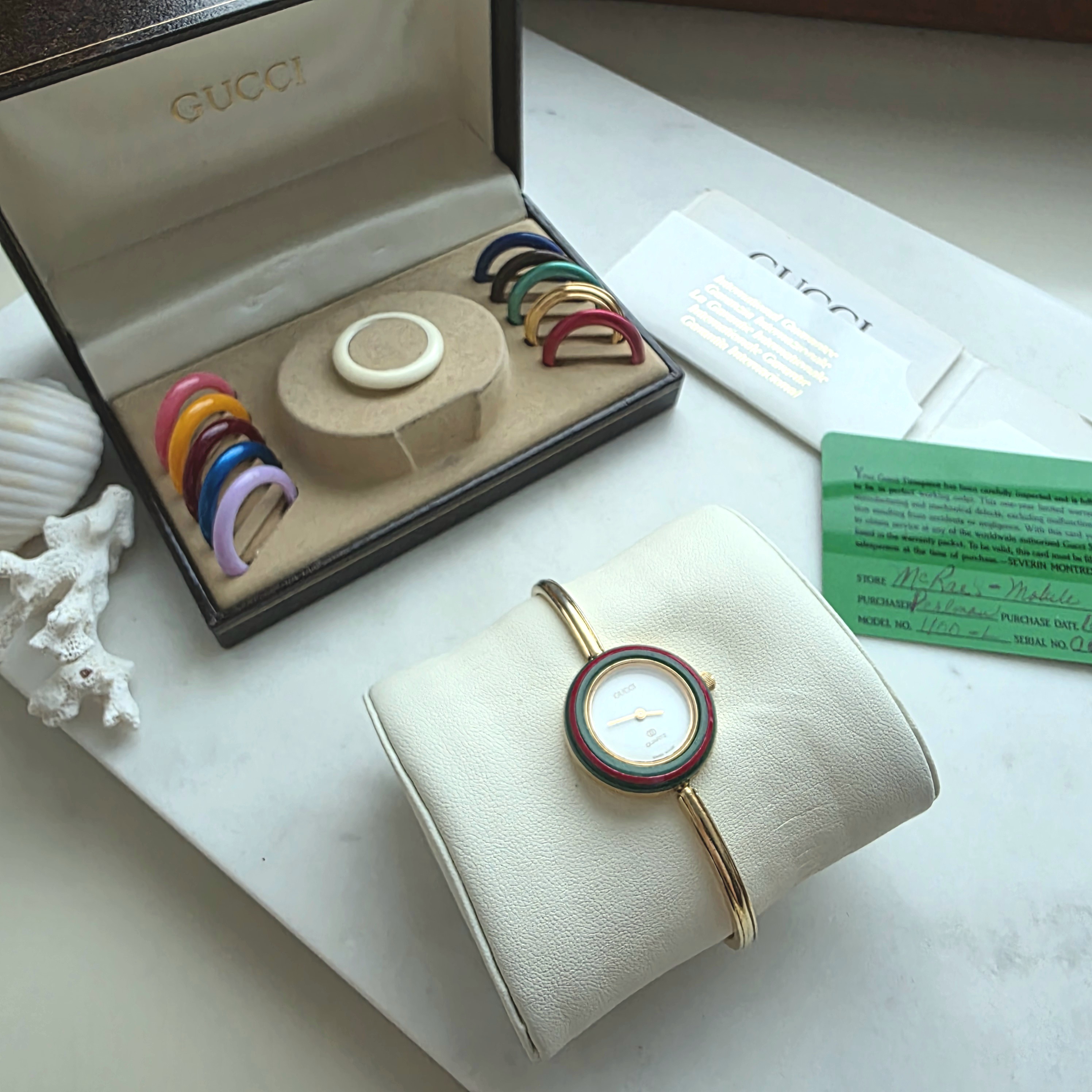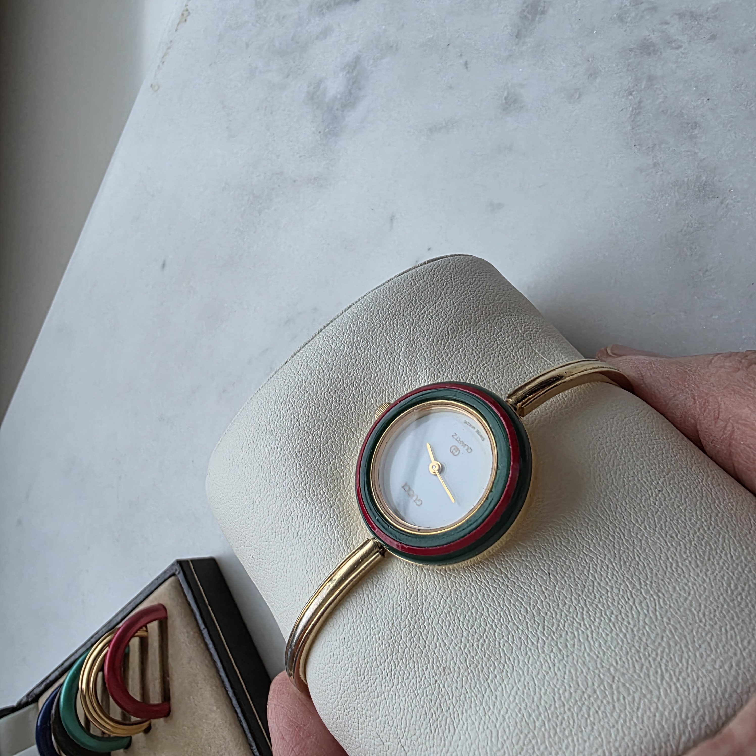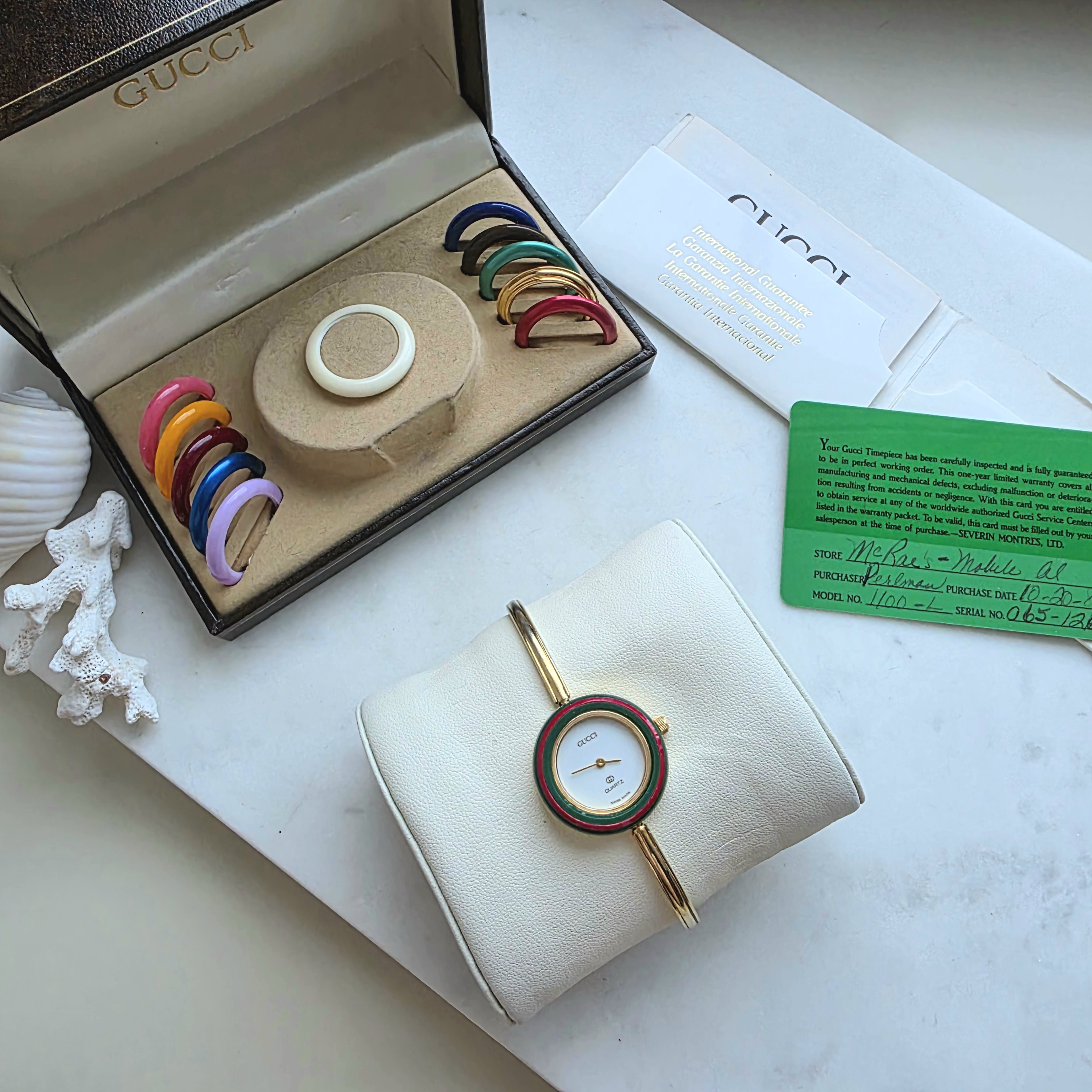 Шикарные часы Gucci в родном футляре с 12 безелями. Часы в прекрасном состоянии, безели без трещин, ремешок в идеальном состоянии.