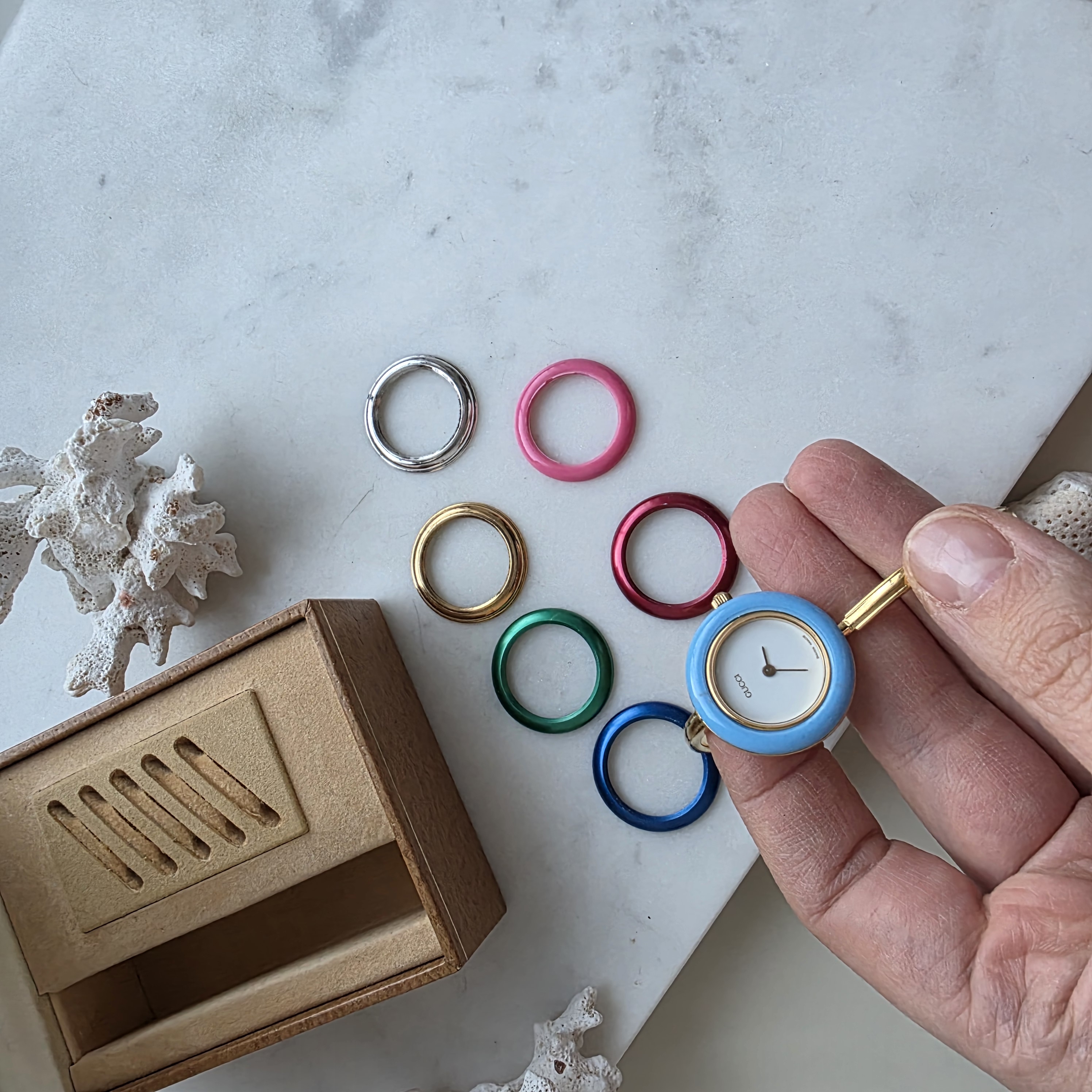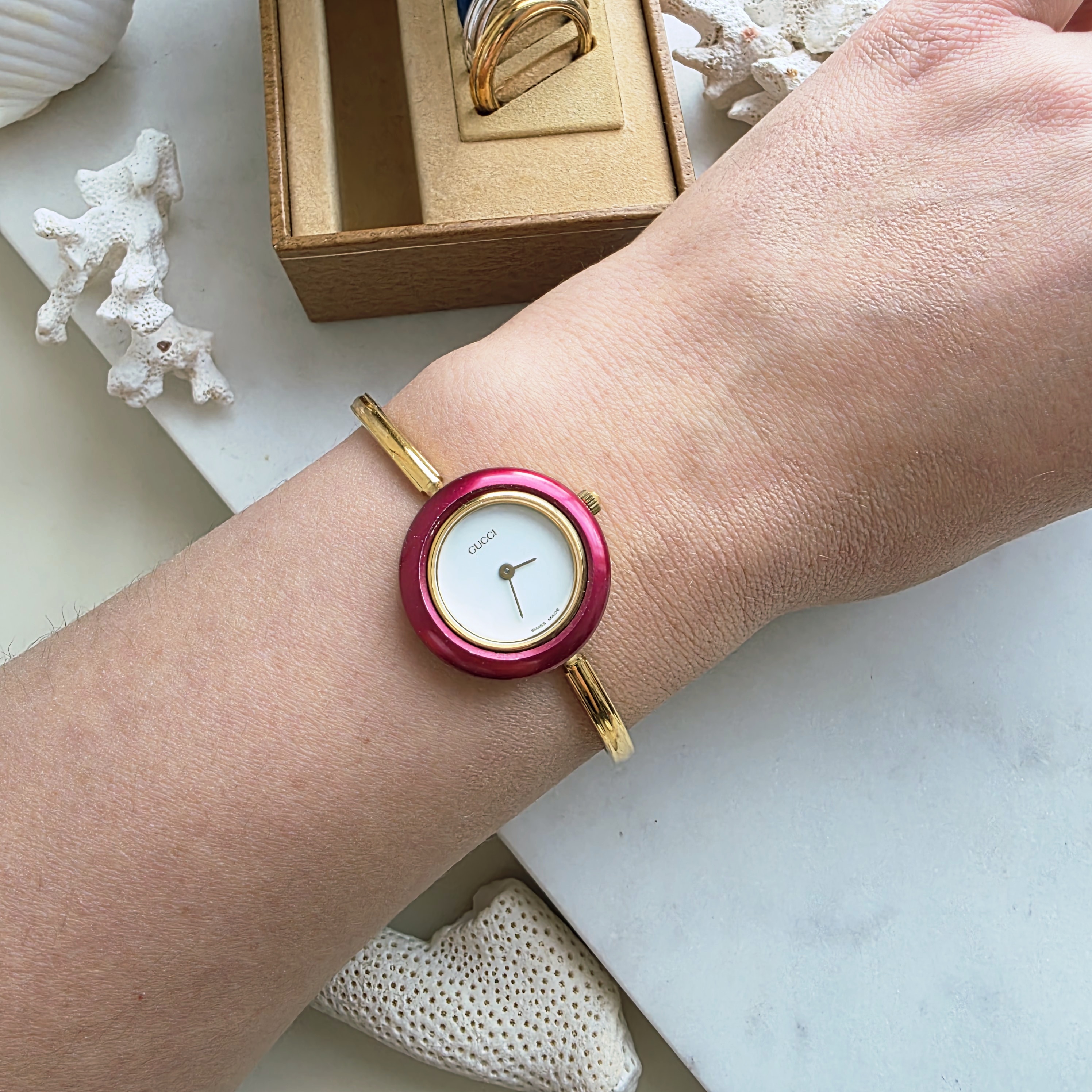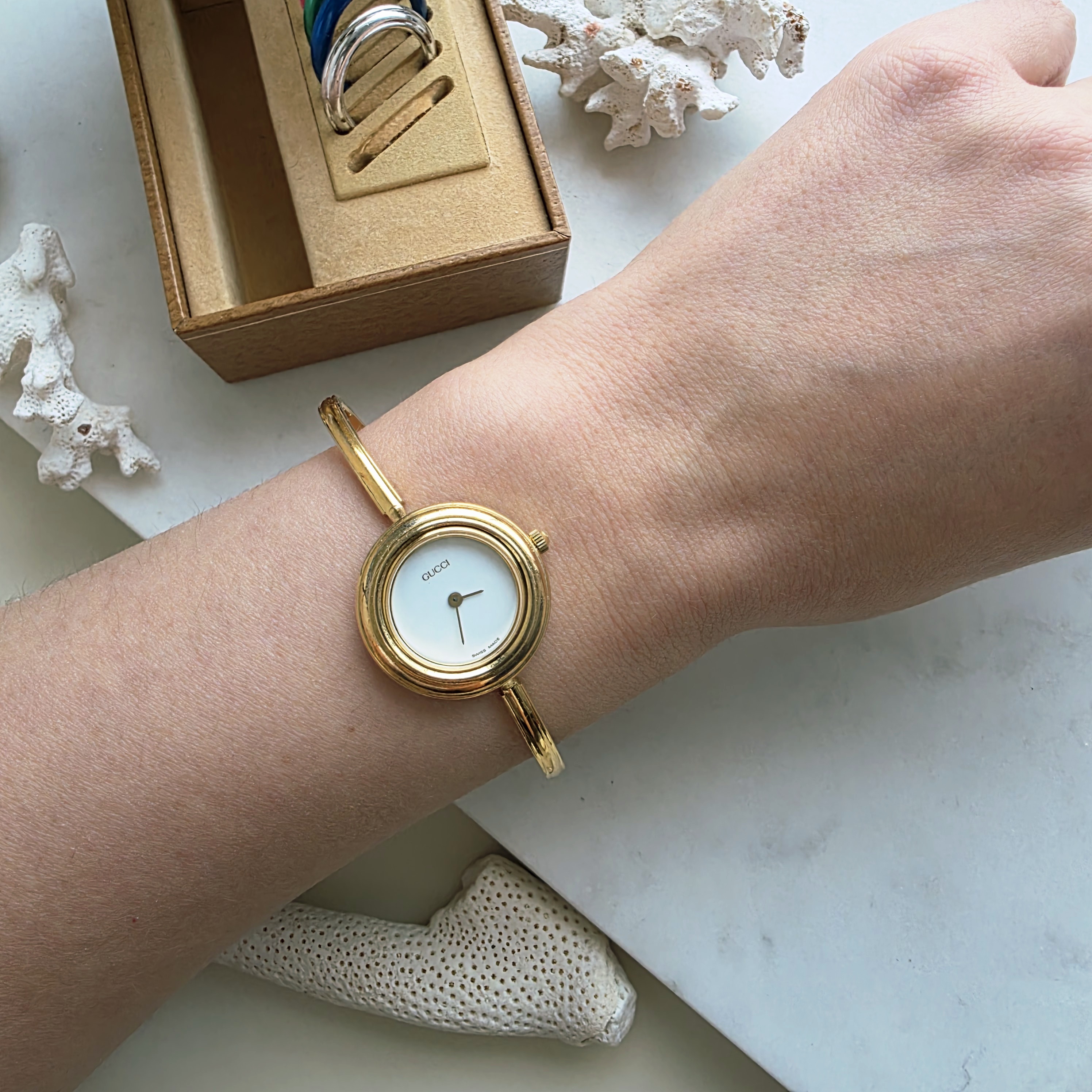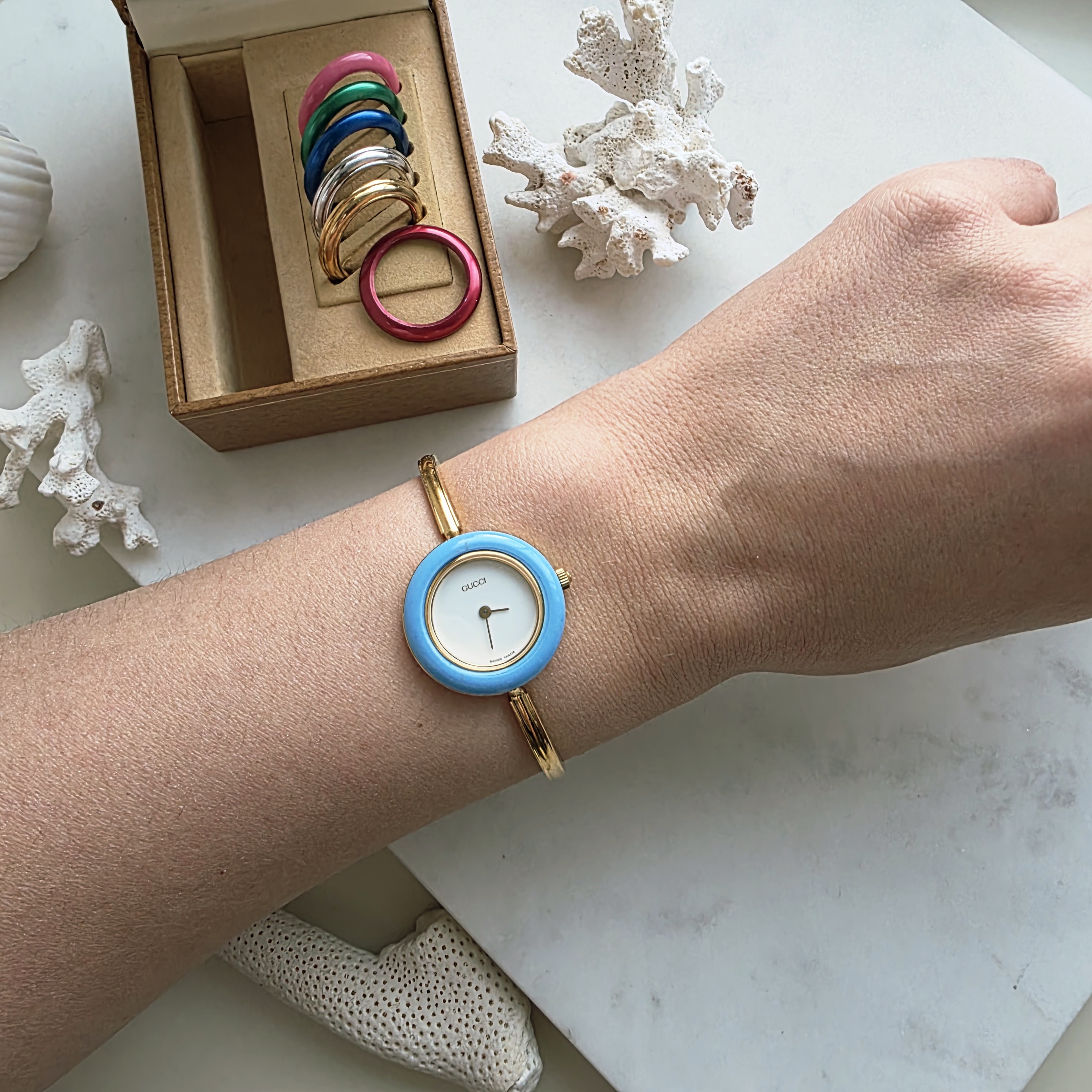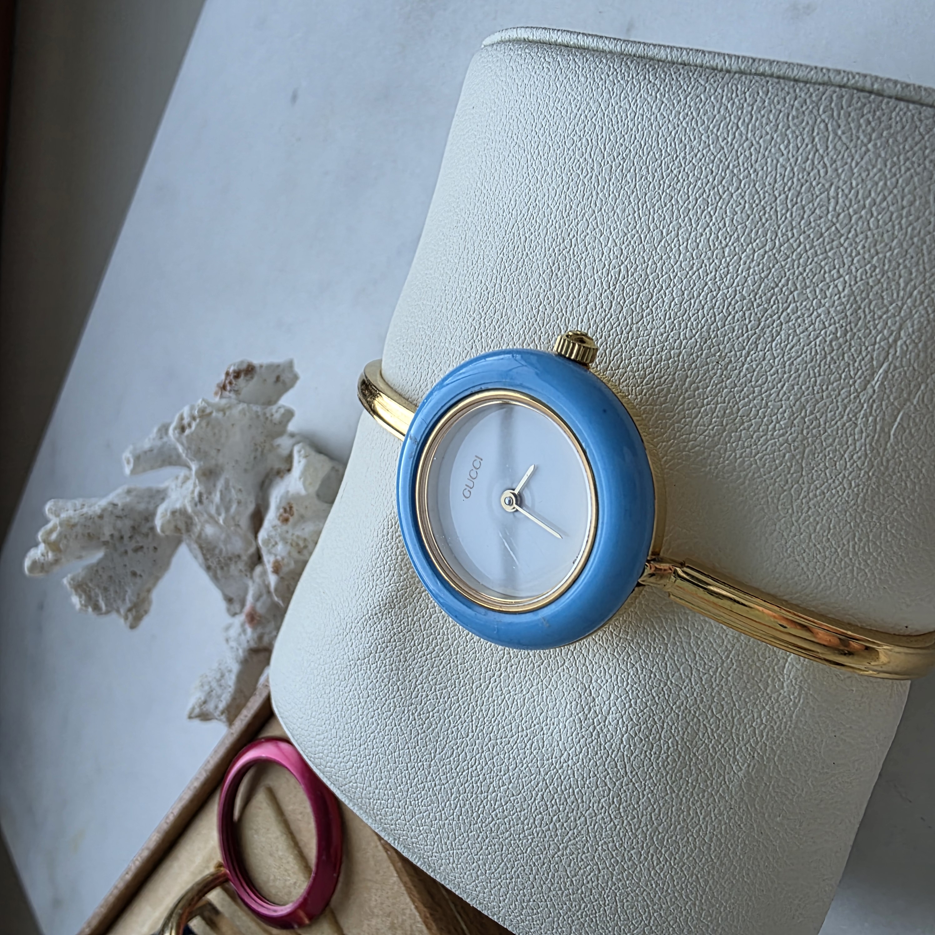 Шикарные часы Gucci в родном футляре с 7 безелями. Часы в прекрасном состоянии, безели без трещин, ремешок в идеальном состоянии.