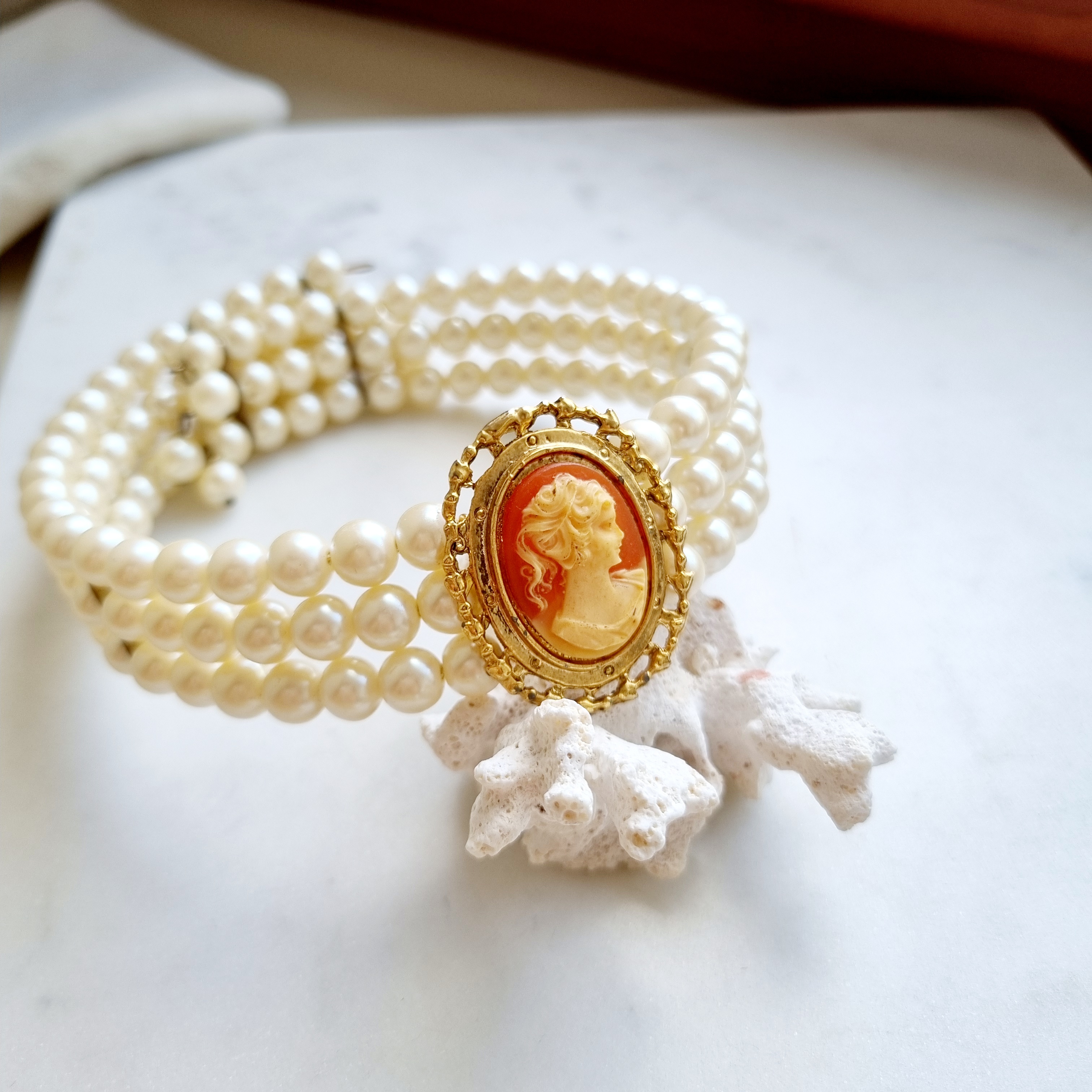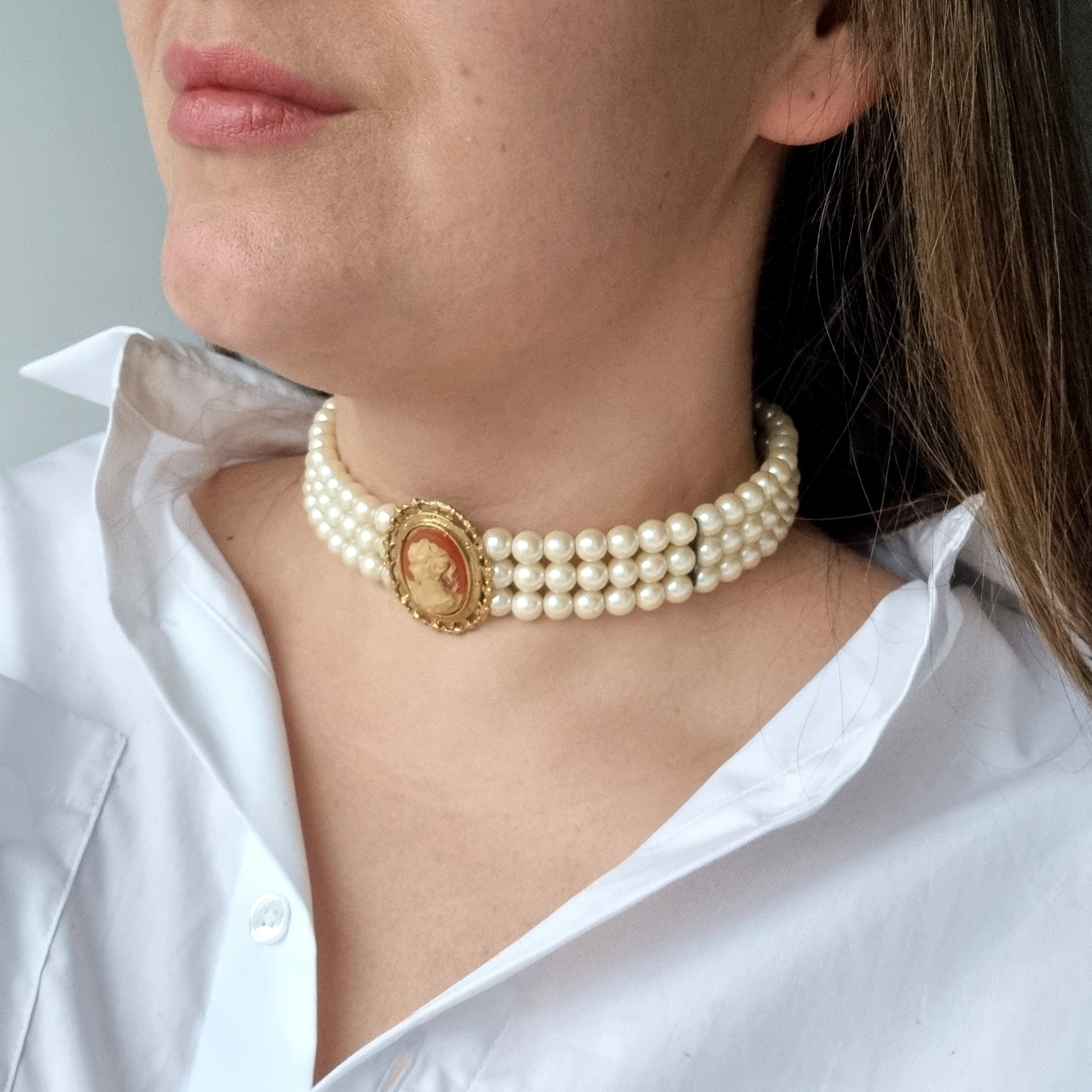 Элегантное колье от бренда Dauplaise с камеей . Чокер смотрится очень эффектно, камея подчеркивает хрупкость шеи, красиво оттеняя нежный румянец.
