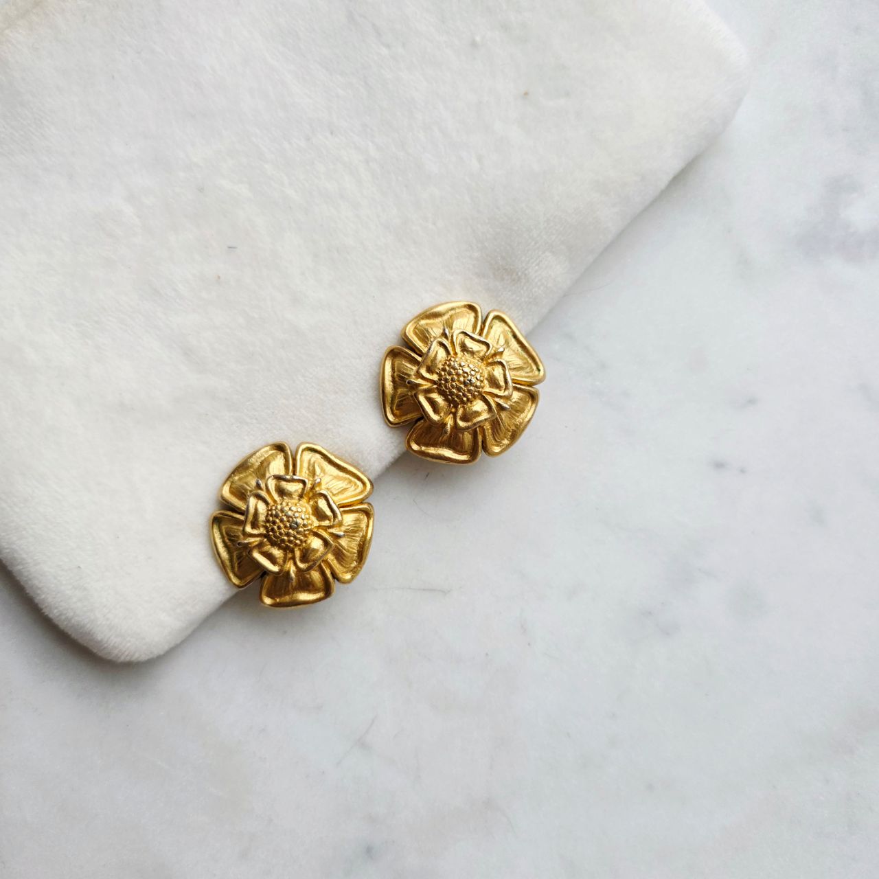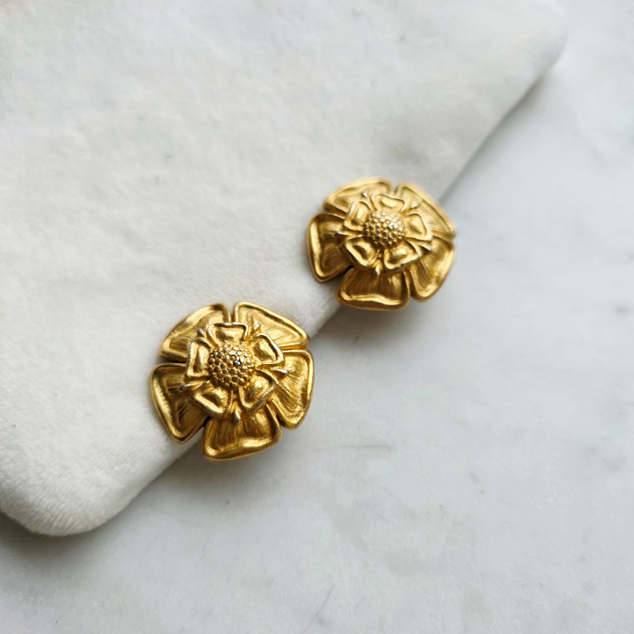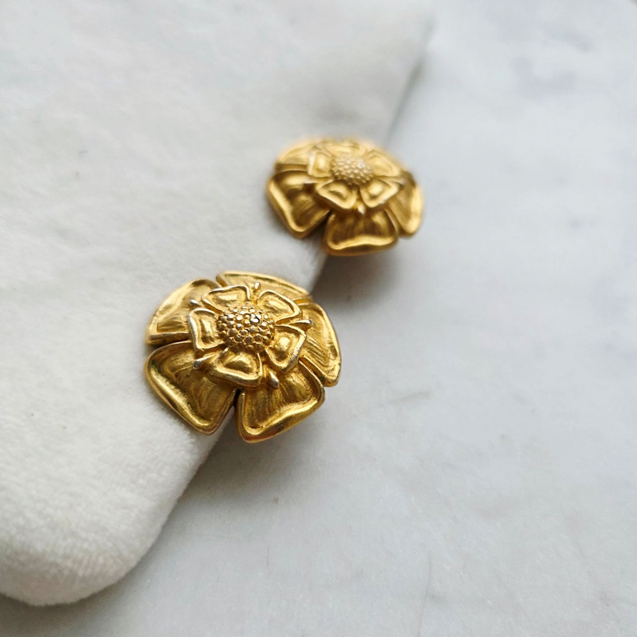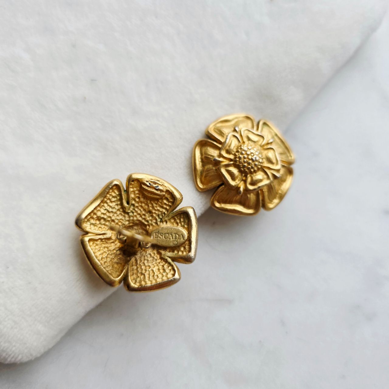 Шикарные клипсы в форме цветка от дома Escada. Отлично садятся на ушко, матовое покрытие смотрится благородно. Клипсы легко вписать в повседневный и вечерний образ.