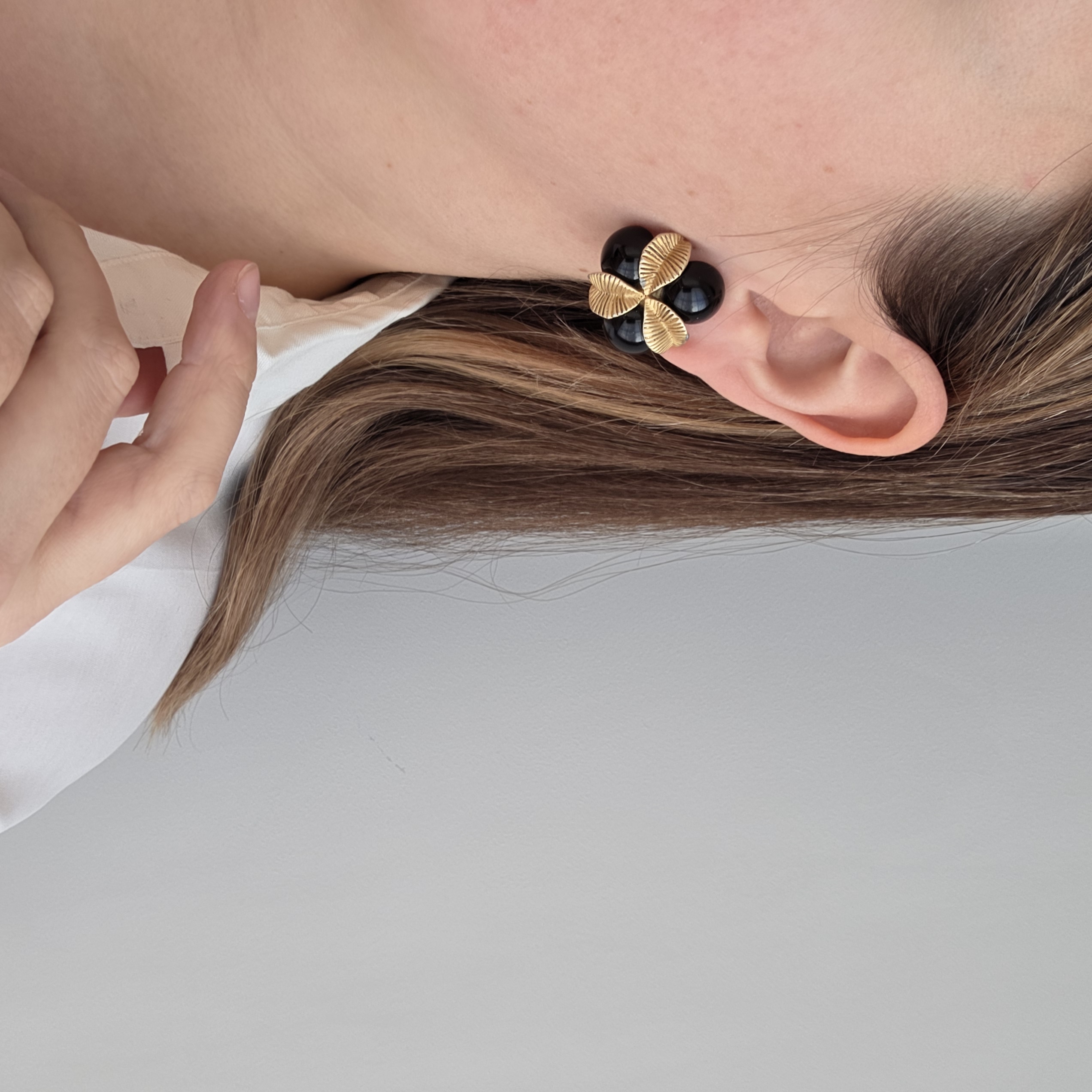 Клипсы Oscar de la Renta с черными кабошонами