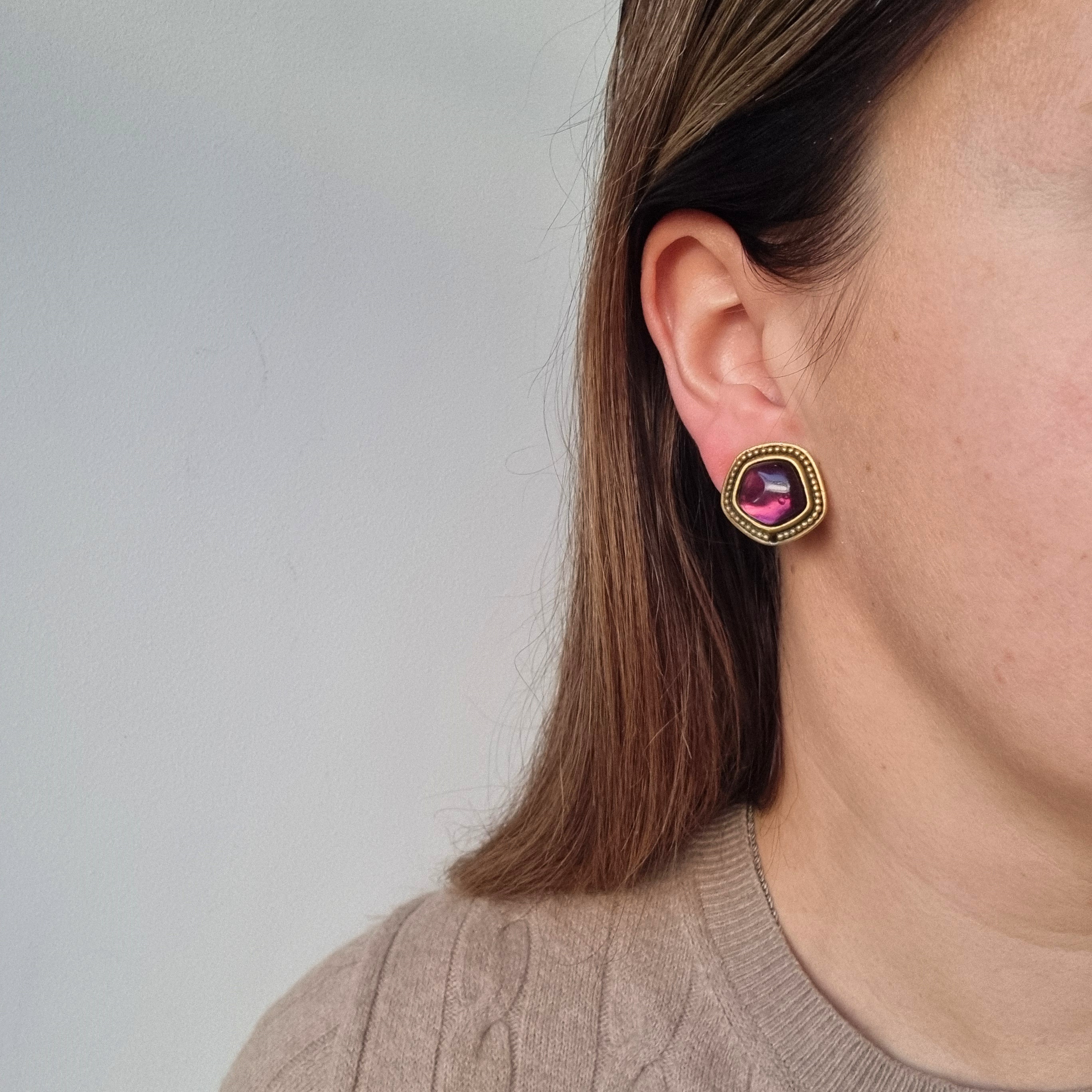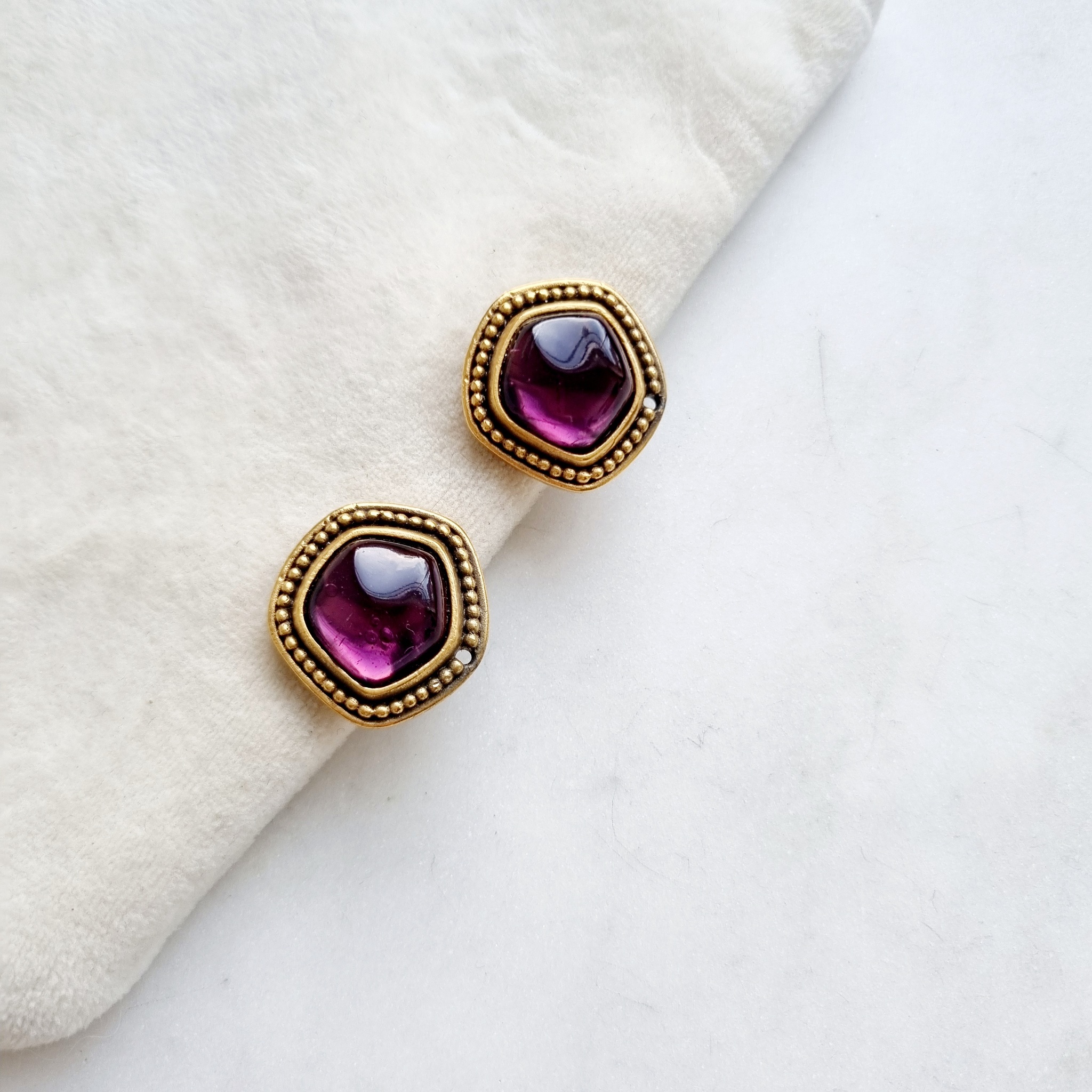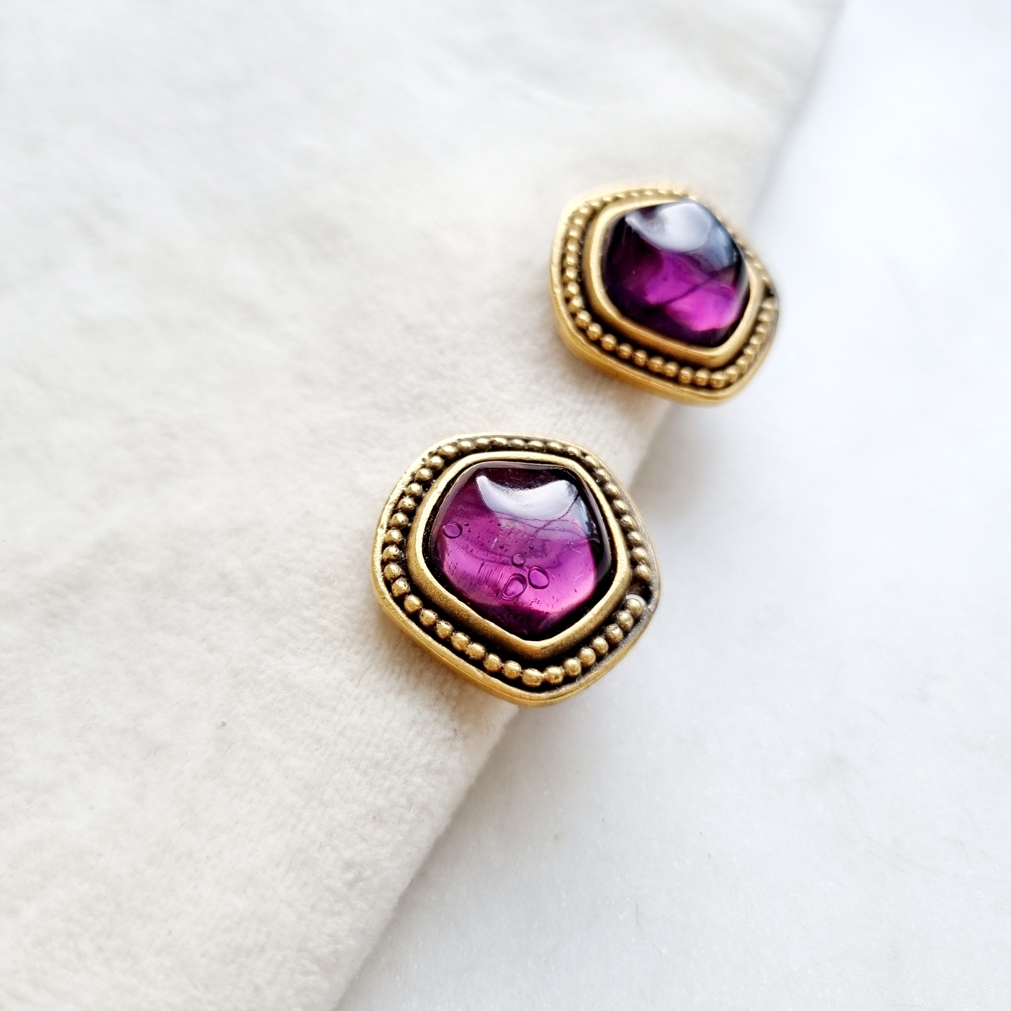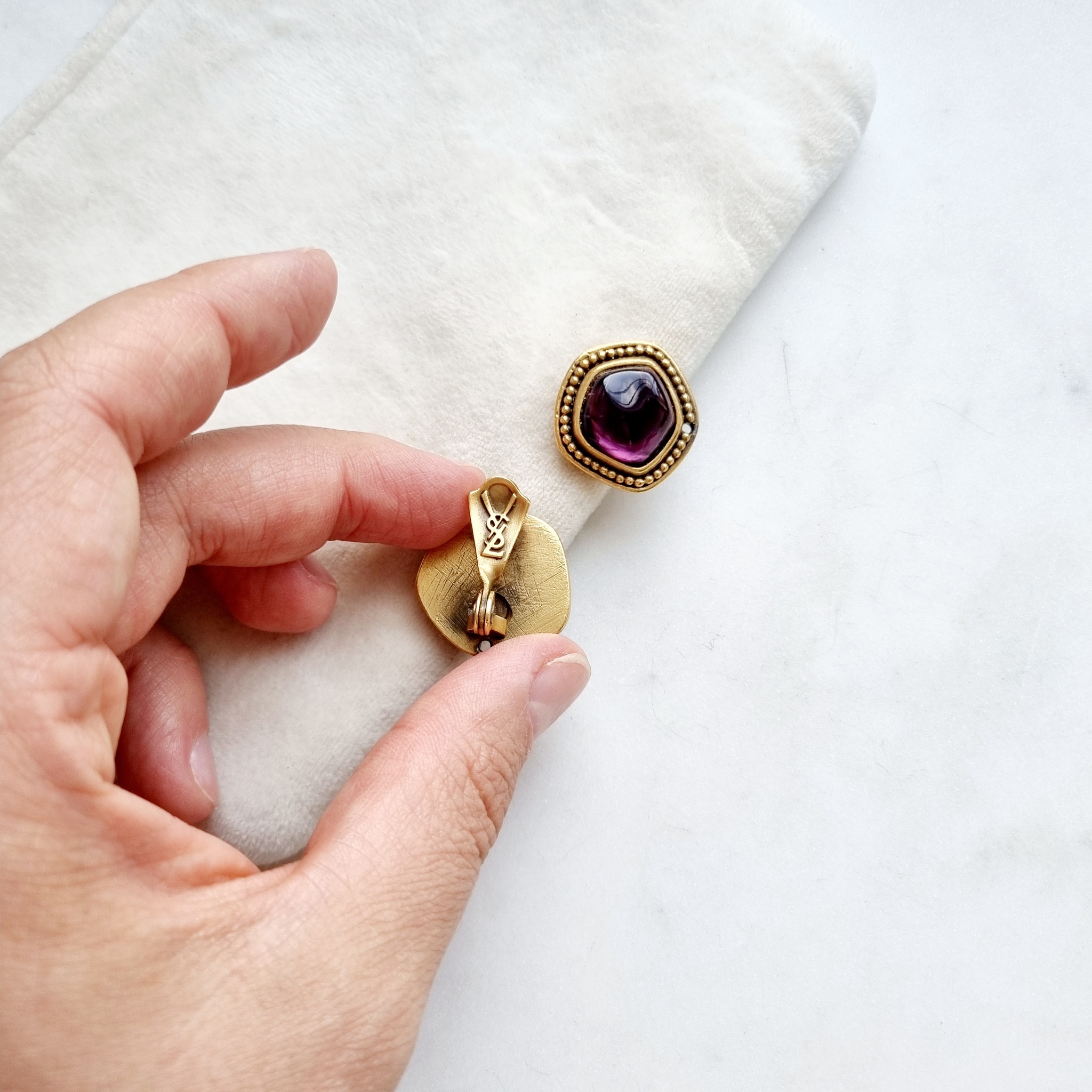 Шикарные клипсы от дома YSL с сиреневым кабошоном из стекла Gripoix. Клипсы обладают удобной застёжкой и будут комфортны на ушке. Стильный кабошон сразу привлекает к себе внимание.