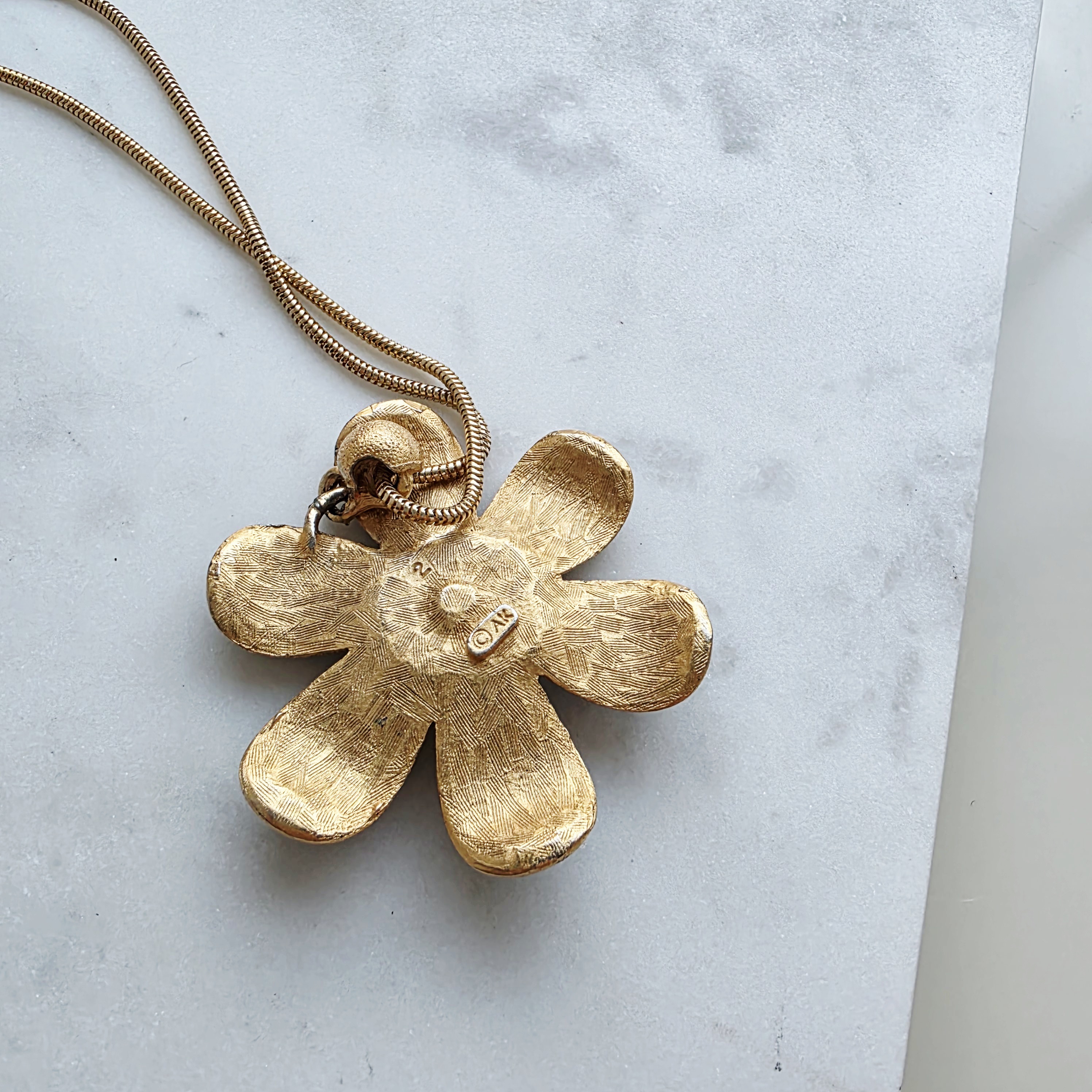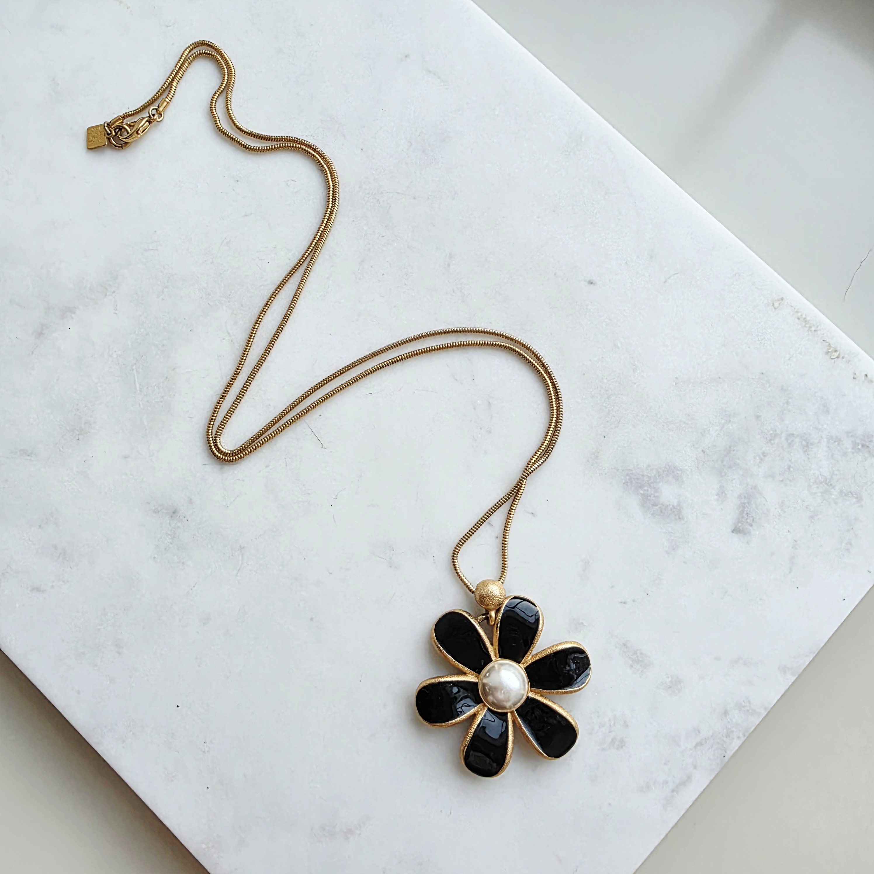 Шикарное колье от бренда Anne Klеin выполнено в виде маргаритки с жемчужной серединкой. Лепестки выполнены в эмали, а также краешки и цепочка выполнены в матовом золоте, которое является визиткной карточкой бренда!